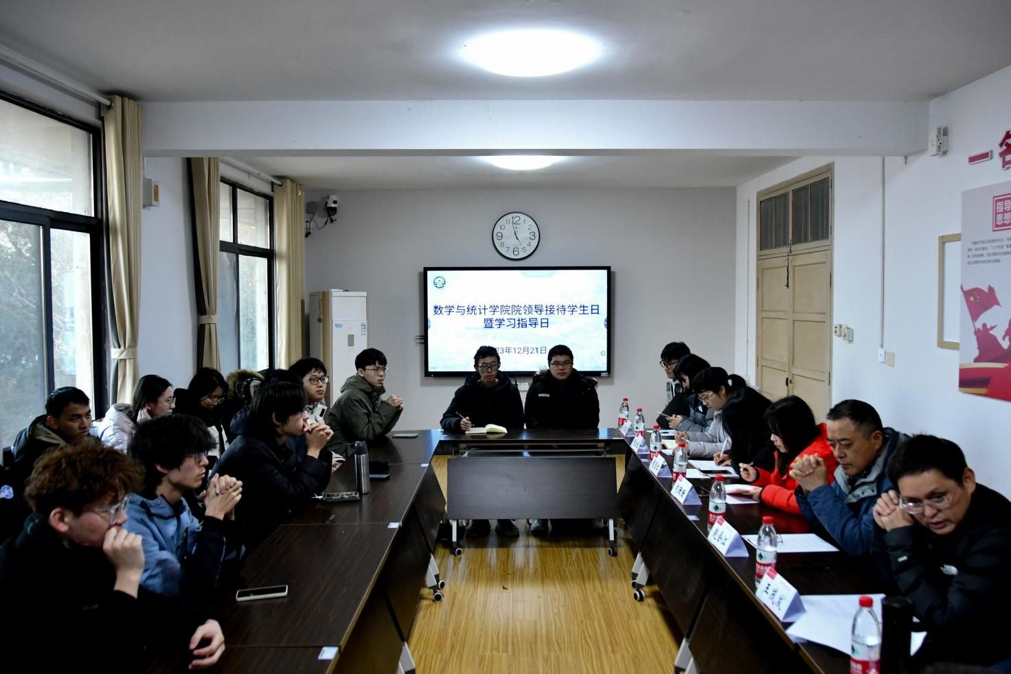 12�21日,本学期“院领导接待学生日”暨学习指导日活动在我院湖滨七舍“学生一站式社区”举行。院长赵会江、副院长王茂发、吕锡亮,院教学办、学工办负责人出席会议,现场解答学生疑问。院党委副书记刘珊珊主持会议�