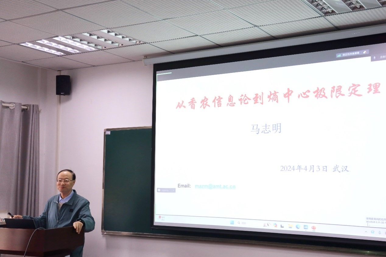,作题为“从香农信息论到熵中心极限定理”的杰出学者讲座。马志明院士在校讲学期间,校长张平文院士与他亲切会谈。