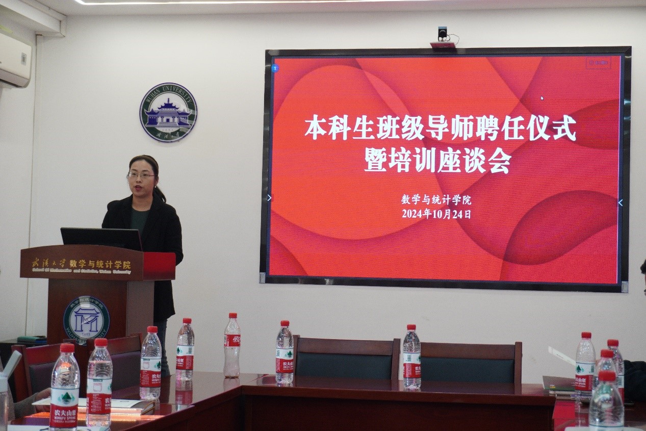 刘珊珊对班级导师的辛勤付出表示感谀她通报了目前学院学生工作的相关情况,布置了近期班级导师需要开展的具体工作。她希望班级导师通过参与学生活动、与学生谈心谈话等方式,在学生中开展细致的学业和成长指导,共同为学生成长成才贡献力量�