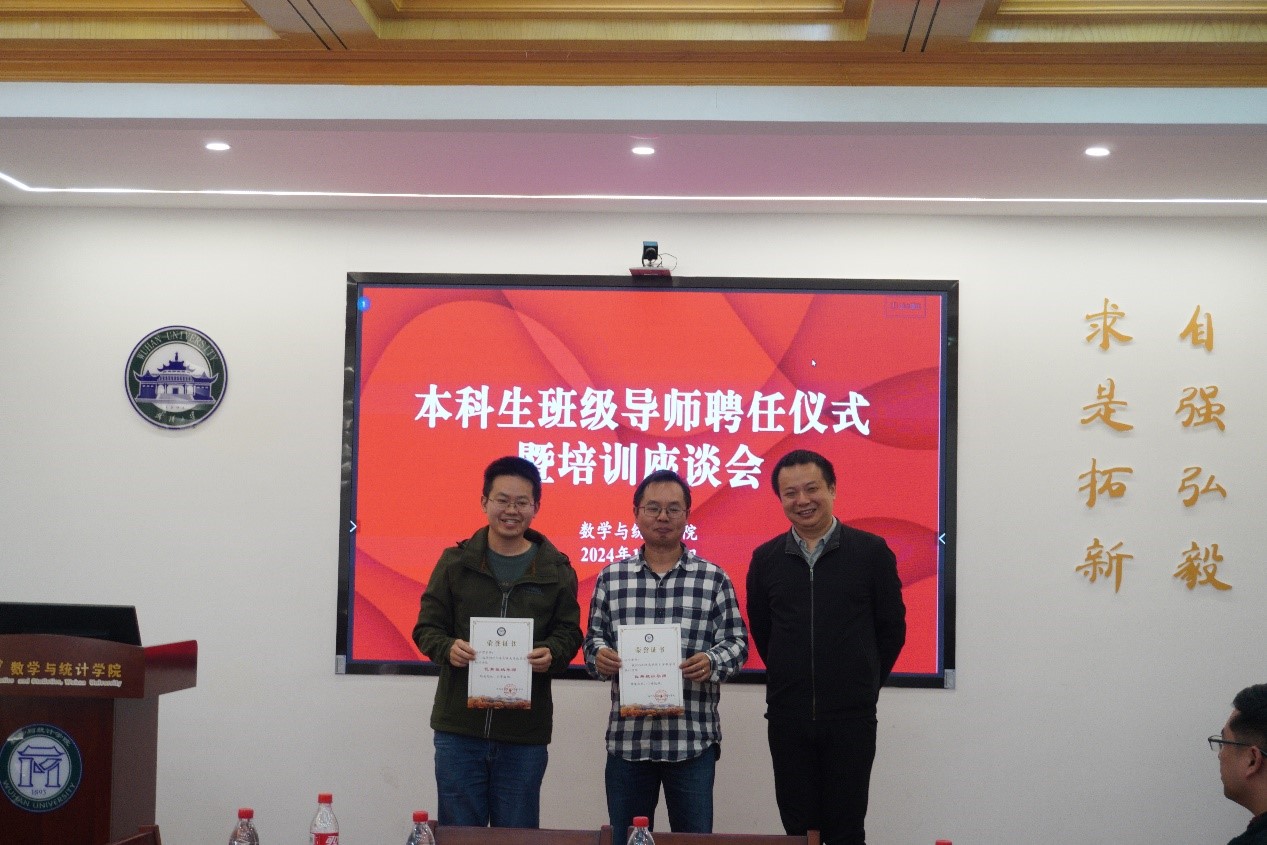 为进一步加强“三全育人”工作,提升本科生教育管理工作质量,10�24日下午,我院�205会议室举行本科生班级导师聘任仪式暨培训座谈会。院党委书记李勤、党委副书记刘珊珊、本科生班级导师和全体本科生辅导员参加会议,会议由学生工作办公室主任胡法拉主持�