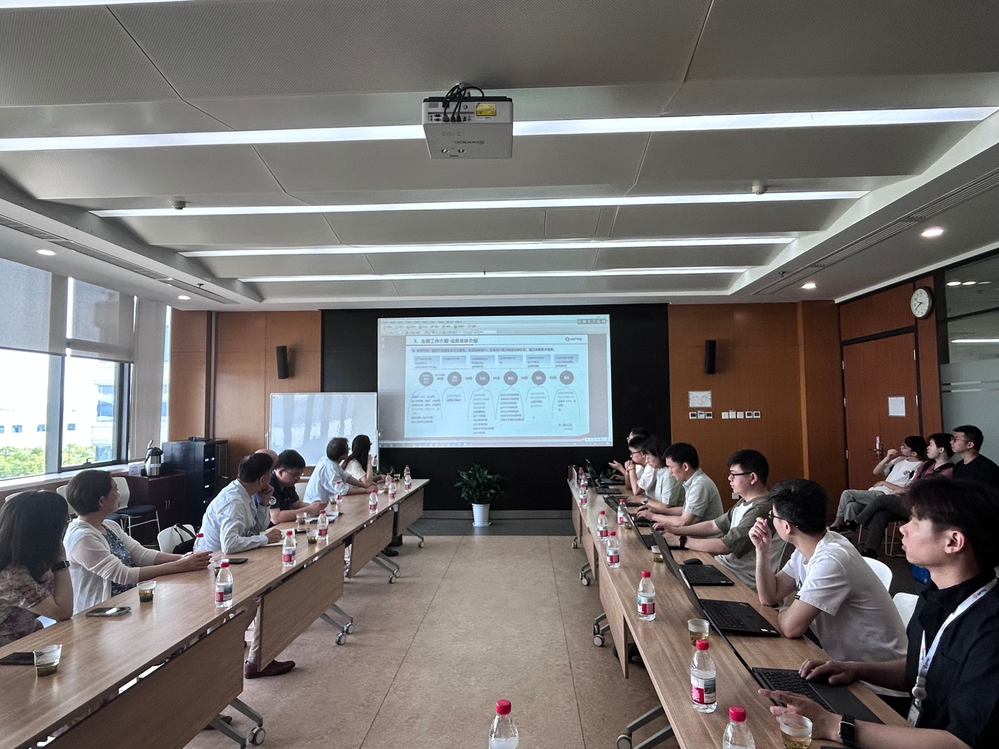 副院长刘伟、党委副书记汪思明、概率与统计科学系主任让光林及教师代表、本科生、研究生参与此次活动,东风研发总院数字化及能力保障部总监崔雨心、数字化总工程师孙伟、数字化平台技术高级主管工程师陈孔武等参与了交流。