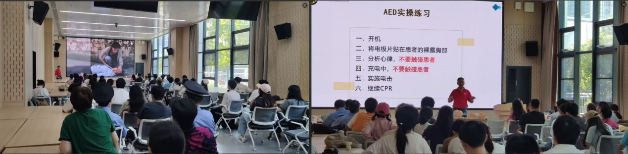 为普及急救技能、提升校园应急能力,让更多师生掌握CPR(心肺复苏)流程及AED(自动体外除颤仪)使用方法,5月29日下午,我院在雷军科技楼B102报告厅成功举办CPR+AED急救培训活动。活动特邀武汉生命之歌救护咨询有限公司专业讲师朱文斌老师授课,吸引了来自全校的近百名师生及物业工作人员代表积极参与,副院长陈春荣出席活动。