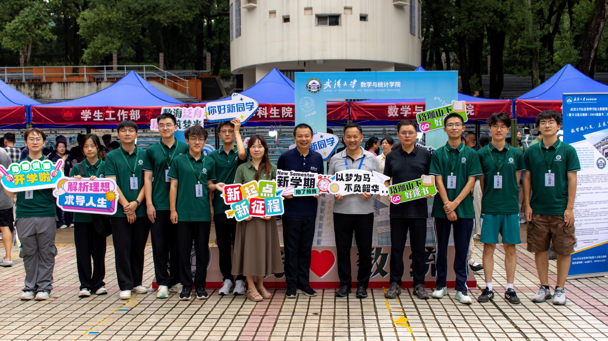 迎新志愿者整装待发来到梅园小操场,以最饱满的姿态迎接2025级本科新生。在志愿者的热情引导下,新生们顺利完成信息登记、宿舍指引等流程,并留下了在珞珈山的第一张照片。