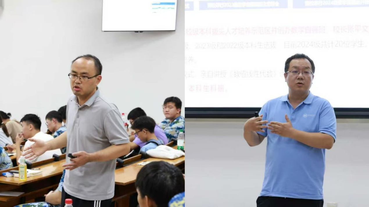 缪爽全面讲解中法数学拔尖班的建设背景、培养方案、培养特色以及考核选拔机制,并详细介绍中法班的招生选拔方案与未来的国际化发展路径。同时,吕锡亮对数学自强班的建立背景、培养特色、选拔考核方案进行了全面的介绍,并详细阐述了本科生科研的培养思路�