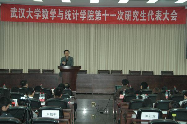 第十一次研究生代表大会在数学会堂隆重召开。参加本次会议的有校党委研究生工作部江尧林主任,校研会主席石韵珞同学,副主席谭金奎同学,院党委书记尹常倬教授,党委副书记梁涛老师,副院长冯慧教授和学工办副主任王忠海老师,以及来自新闻与传播学院、资源与环境科学学院,经济与管理学院、法学院、文学院、化学与分子科学学院、政治与公共管理学院、物理科学与技术学院、计算机学院、马克思主义学院等十个兄弟学院研究生会的嘉宾。参加此次会议的研究生代表共计109人。