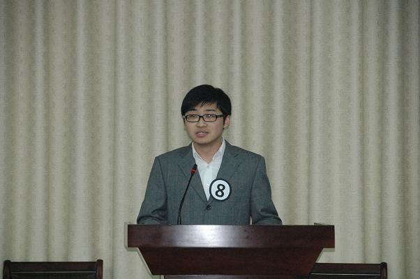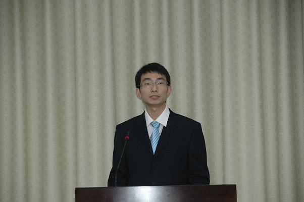 随后,江尧林主任代表学校领导致辞。他指出,数学院研究生会工作一直受到大家的好评,开展的活动深受学生喜爱,尤其对学院的“杏坛杯”讲课比赛、“数学星光论坛”和“教研会”等品牌活动予以高度赞扬。在新一届研会主席团成立之时,他希望数学院第十一届研究生会能够解放思想,改革创新,取得更加优异的成绩。校研会主席石韵珞同学也代表校研究生会致贺辞,他对数院研究生代表大会的召开表示祝贺,并对第十届研究生会取得的成绩做出了肯定。接着,梁涛老师宣读了关于第十届研究生会优秀学生干部,优秀个人的表彰文件,并对他们表示祝贺。