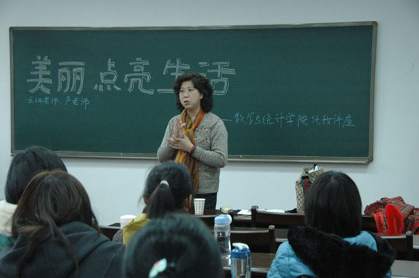 讲座上,严老师首先指出了化妆的重要性。女性化妆不仅是为了爱美,也是提高自信和尊重他人的表现。对于即将毕业,迈入职场的女性,化妆更是不可或缺的求职必杀技。紧接着,严老师从护肤、隔离、打底、上妆等几个方面,详细讲解了化妆的基本步骤,并根据不同肤色和五官解释了应该如何扬长避短,让化妆达到最好的效果。此外,严老师还强调不同场合需要不同的妆容,而在生活中化淡妆最为得体,能够突显出美丽又不做作。讲座还有现场演示环节,严老师现场为多位同学和老师示范化妆,亲眼目睹了化妆前和化妆后的变化,在场的每一位深切地感觉到了美丽需要装扮。最后,严老师耐心回答了女生们提出的各种细节问题,并根据每个人的容貌特点分别给出了化妆的建议。