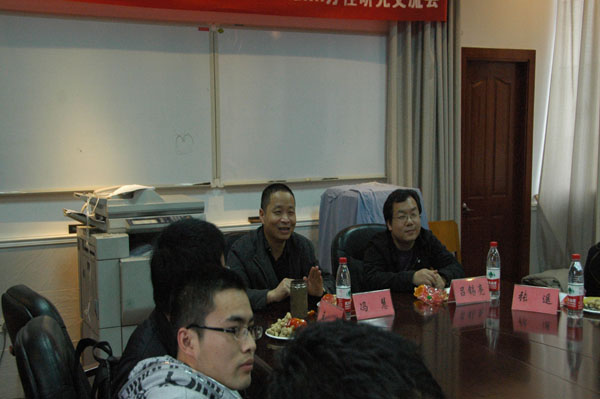 副院长冯慧教授,计算数学系青年教师吕锡亮副教授,研究生辅导员张遥老师以及Boltzmann方程研讨会的主讲人、2011级博士生王涛。