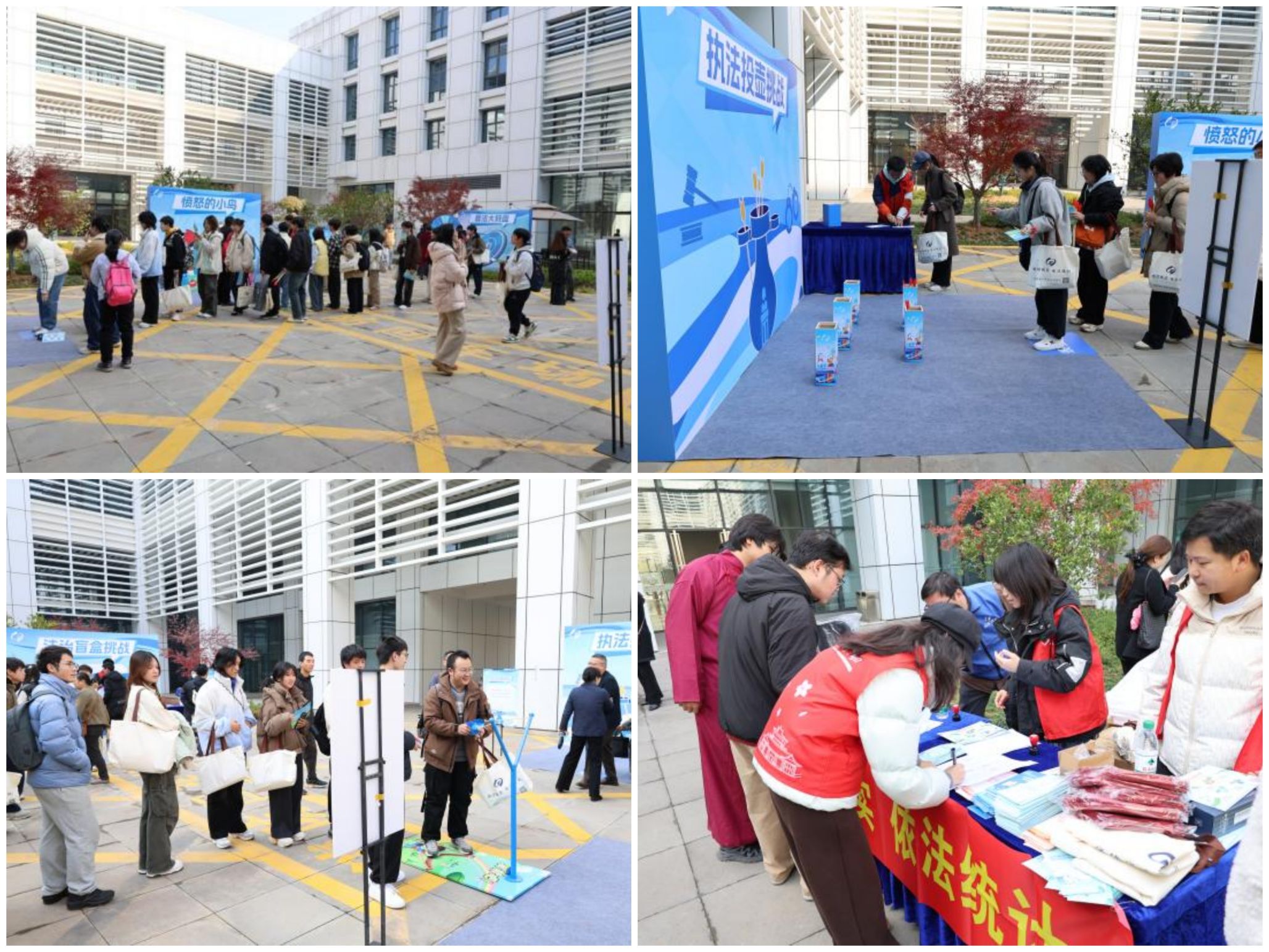 主会场外,“执法投壶挑战”、“普法大转盘”、“数说江城探真知”等有趣的互动体验区也吸引了大批师生参与,各个互动关卡点纷纷排起长队。这些活动将法治知识与趣味游戏巧妙结合起来,一问一答、交流互动之间,单调的法律、数据问题也变得鲜活起来。