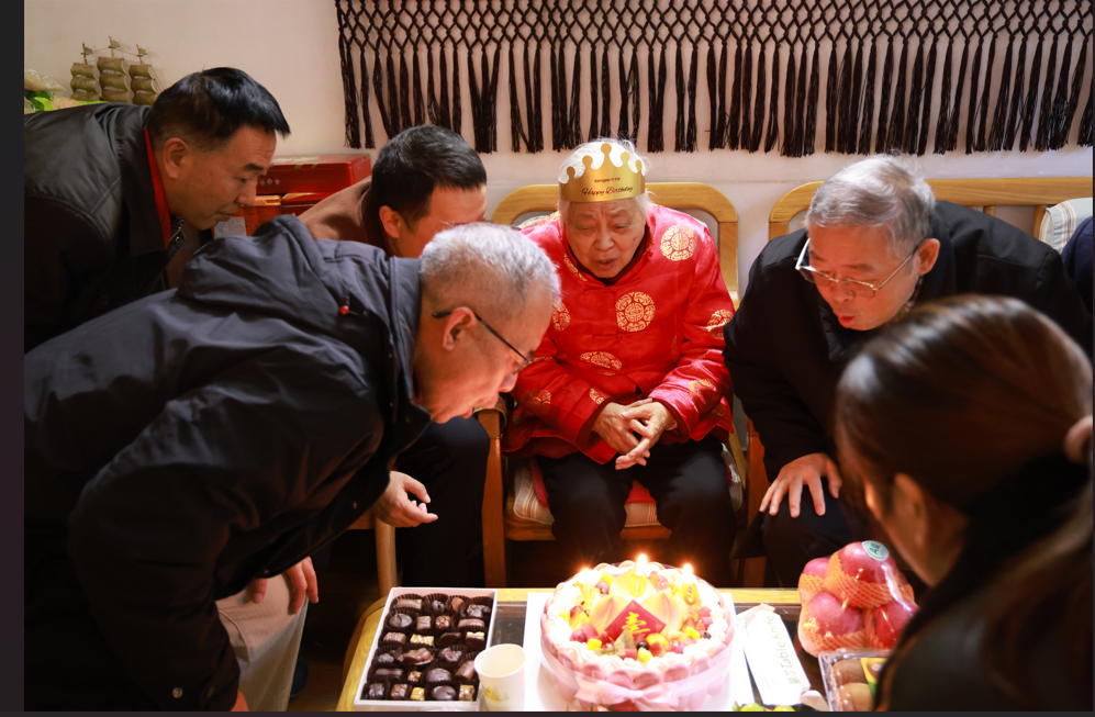 程老师看到众人前来看望,欣然拍手,笑容如孩童般灿烂。叶骏代表离退休工作处送上果篮,院党委书记李勤向程老师献上鲜花和生日蛋糕,陈化教授和刘伟安教授也向他们敬爱的老师献上真诚的祝福!程老师的三代传人共同唱响《生日快乐》歌,为她点亮百岁蜡烛,温暖的烛光映照着她幸福的笑容,现场洋溢着欢乐与感动。冬日虽寒,也吹不凉我们心头为您沸腾的喜悦;再厚的雪,也盖不住您生命里透出的百年芳华�