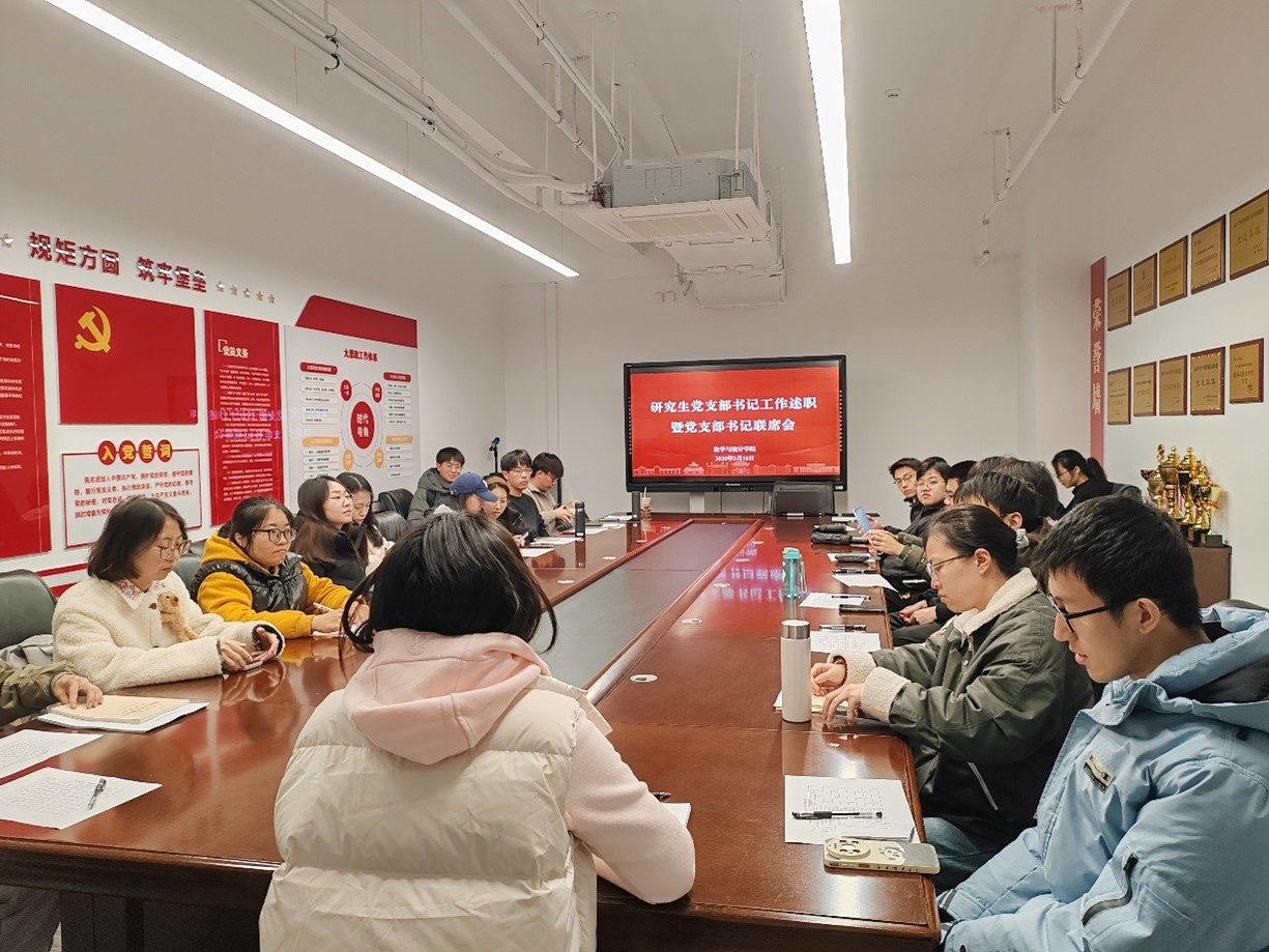 院党委书记李勤点评讲话。他代表院党委,对各支部过去一年取得的成绩予以充分肯定。他提出三点希望:各支部要在高层次人才入党工作上持续发力,不断实现新突破;要持续深化党建与业务深度融合,进一步凝聚人心、形成合力,以高质量党建引领事业高质量发展;要持续深耕学科建设,不断凝练数学学科特色优势,推动学科发展再上新台阶。