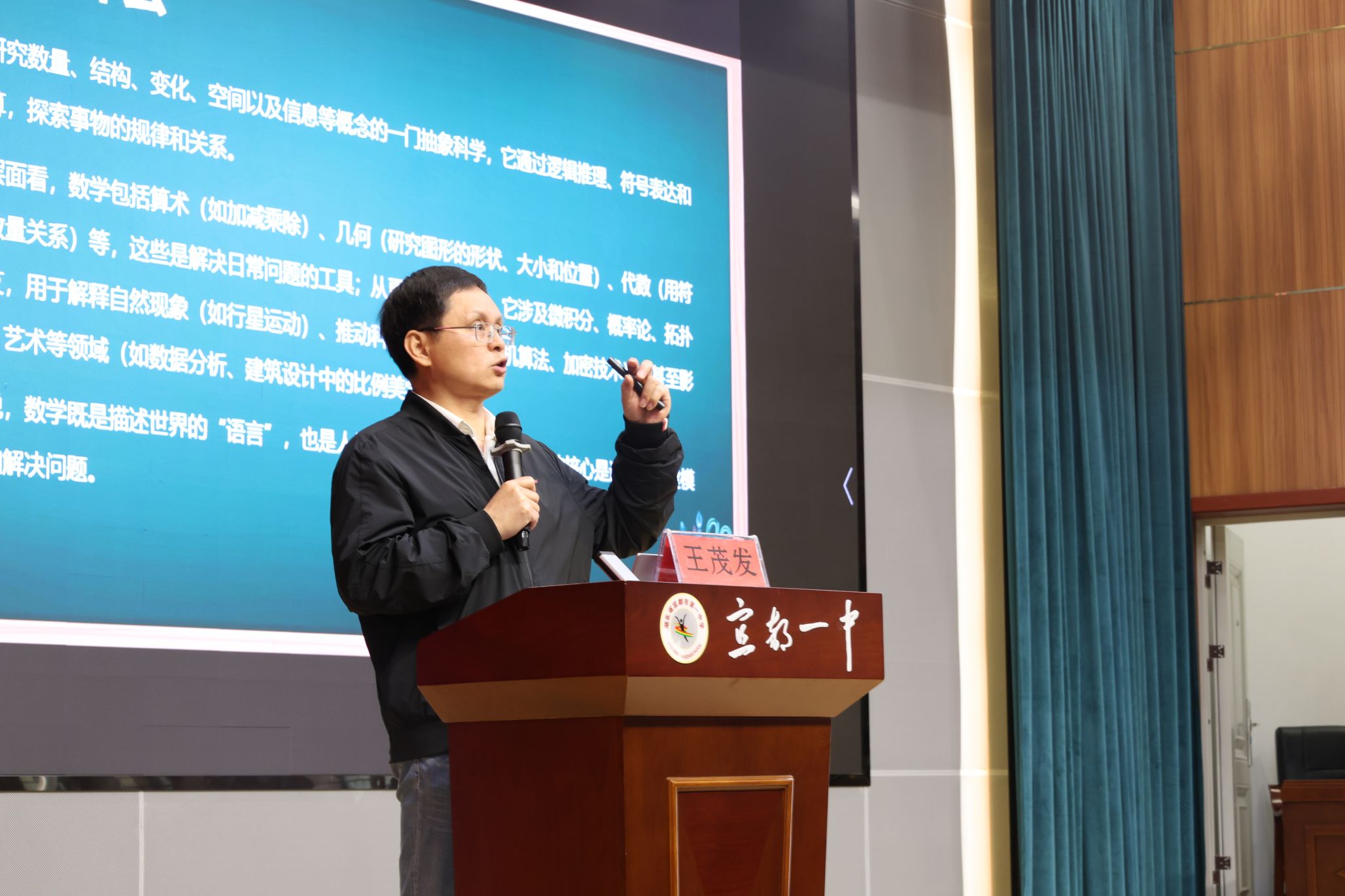 学院副院长王茂发教授作专题讲座《数学——现代科技的基石》。他从抽象的公式定理出发,带领现场师生走进数学的世界,感受这一基础学科如何从理论走向实践、从课堂走向国家发展主战场。从数学史中的伟大发现到当代科技创新的前沿突破,王院长深入浅出的讲解,生动诠释了新时代背景下的“数学之用”——学好数学,是为了掌握认识世界的钥匙,更是为了练就服务国家发展的硬核本领�