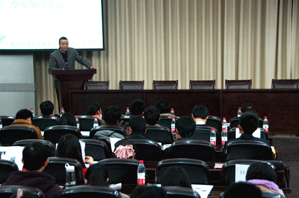 研究生会所做的工作,尤其对学院的“湖北省高校数学讲课比赛”、“杏坛杯”讲课比赛等品牌活动表示了高度赞扬。同时,她还传达了校党委书记李健教授讲话的重要精神,并希望第十二届研究生会能够解放思想,改革创新,取得更加优异的成绩。