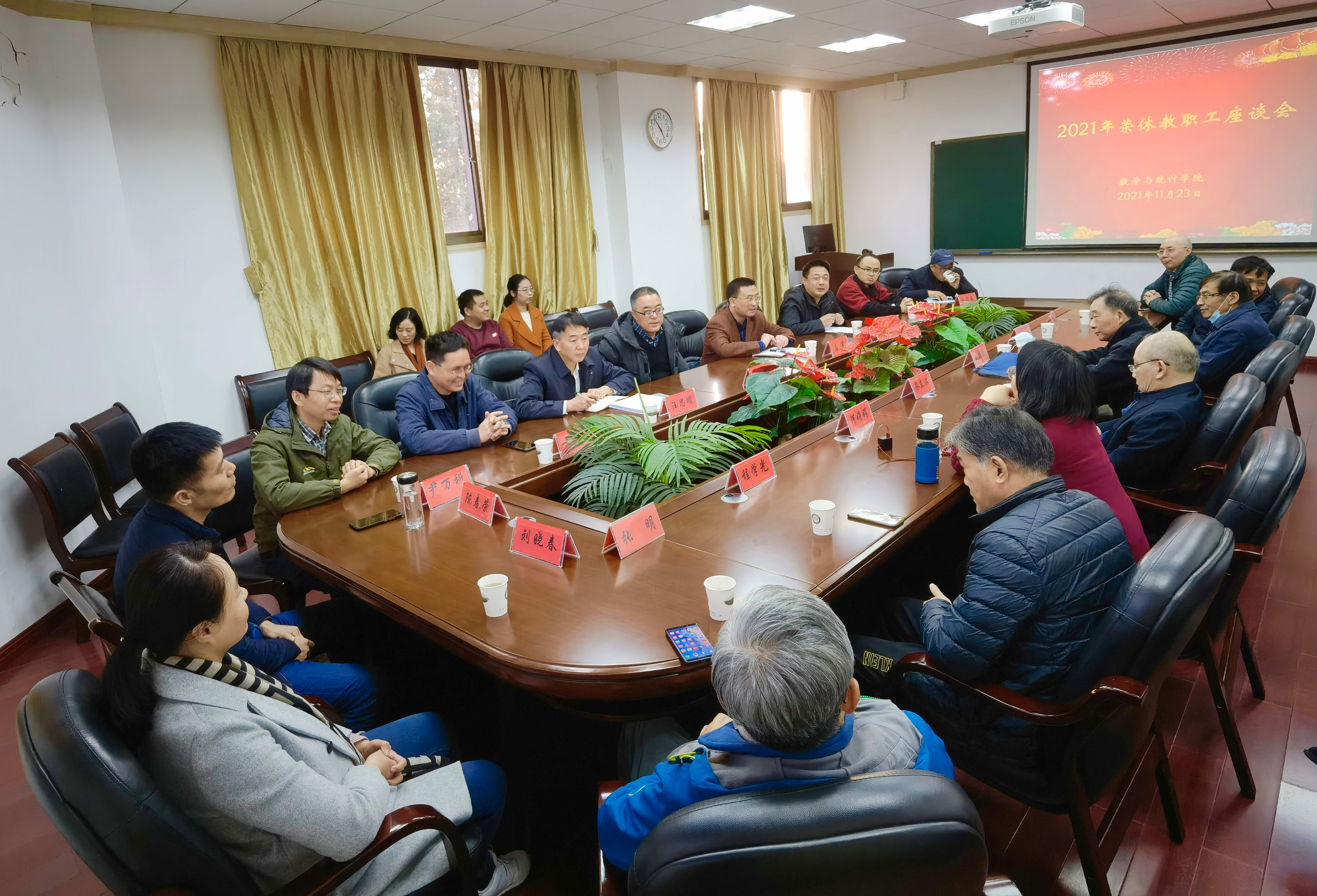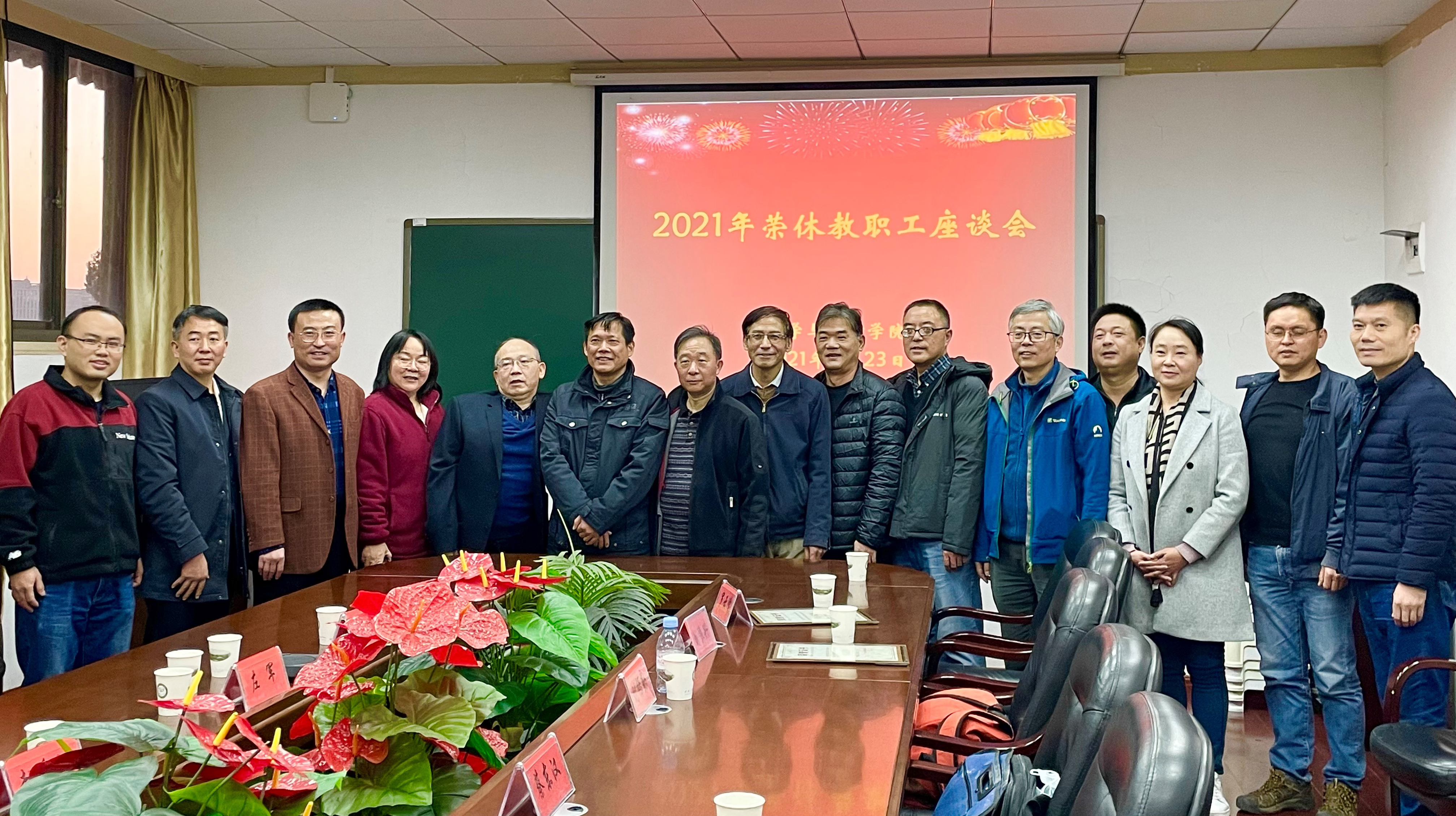 隆重举办2021年荣休教职工座谈会。院党委书记左军、院长赵会江等全体院党政领导、系主任及办公室老师参会,与今年荣休教职工亲切座谈。院党委副书记黄安云主持会议。