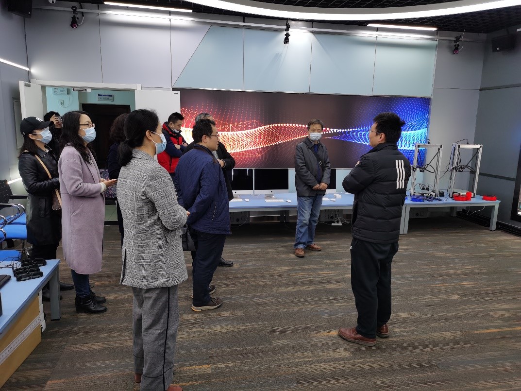 调研组,并全程陪同。调研小组参观了信管学院实验中心的教学实验室、虚拟实训中心、冷通道服务器机房,并通过展板和工作人员的介绍了解了中心的管理模式、项目平台等情况,调研组成员认为很多平台项目,成人导航