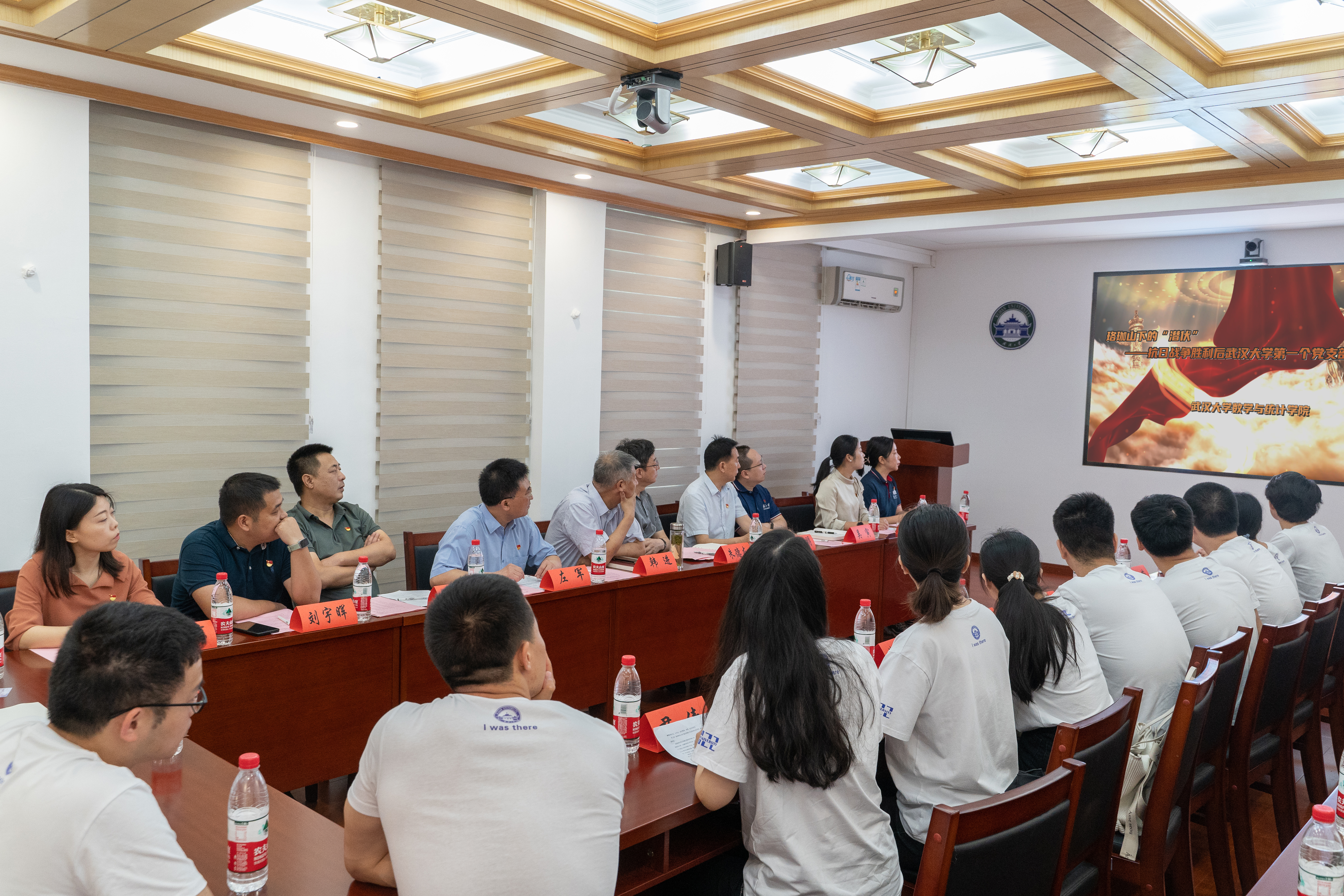 韩进和师生们集体观看了我院制作拍摄的视频——《珞珈山下的“潜伏”——抗日战争胜利后武汉大学第一个党支部的成立》。视频访谈了我院年过九旬的老党员赵施光教授追求加入党组织,并为党的事业奋斗70余载的历程,真情回顾了我校光辉党史的感人往事。
