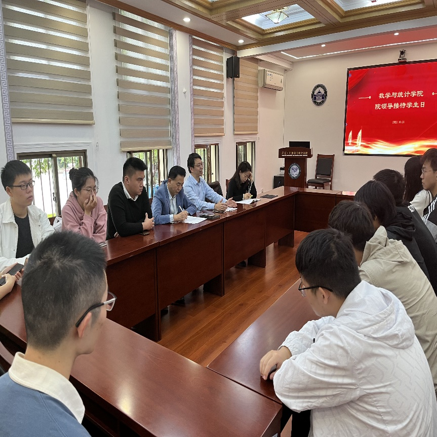 10月20日、21日,学院面向数学强基班和数学弘毅班本科生举办了两场“院领导接待学生日”活动。院党委副书记汪思明、副院长尹万科、教学管理办公室副主任胡雪红出席。院团委书记刘宇晖主持活动。