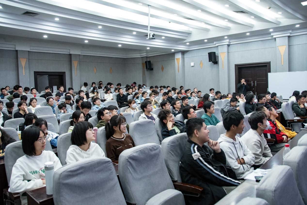 党委副书记汪思明主持讲座,来自不同院系的近200名学生参加活动。