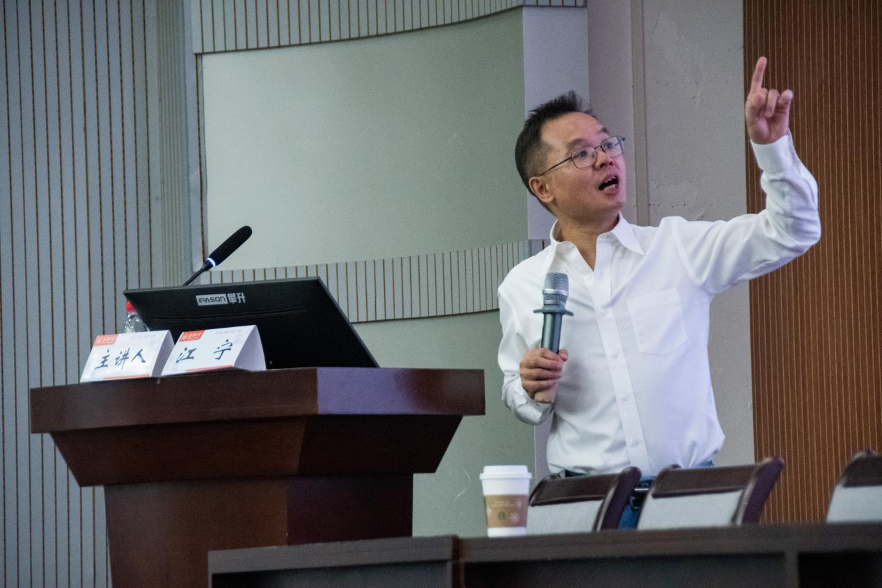 江宁教授以《大数学家的小故事——浓缩百年数学风云》为题展开讲座。他以时间为线,讲述了欧拉等诸多国内外数学界传奇人物的小故事及其背景。