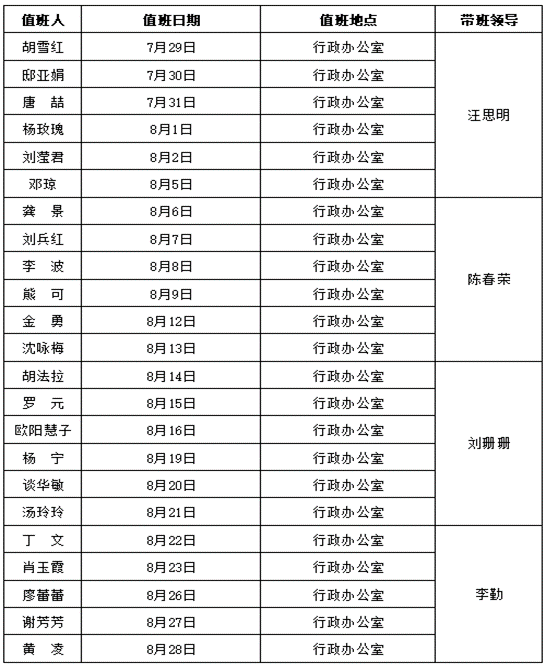 (一)严格执行值班制度,每天至少安排1名中层领导干部带班、1名工作人员在岗值班,保证师生办事能找到人、能办成事,如出现突发情况能及时妥善处置。