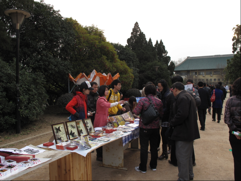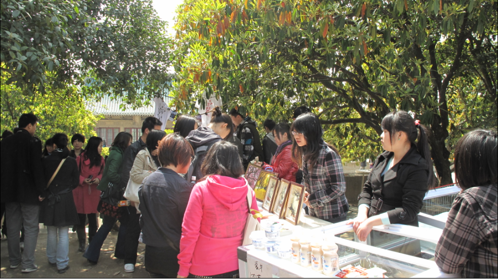 生活部的同学萌生了在樱花节期间利用课余时间售卖武大樱花纪念品的想法,以达到勤工俭学和锻炼自己的目的。在数院老师的支持下,这一活动顺利开展并收到了良好的效果。