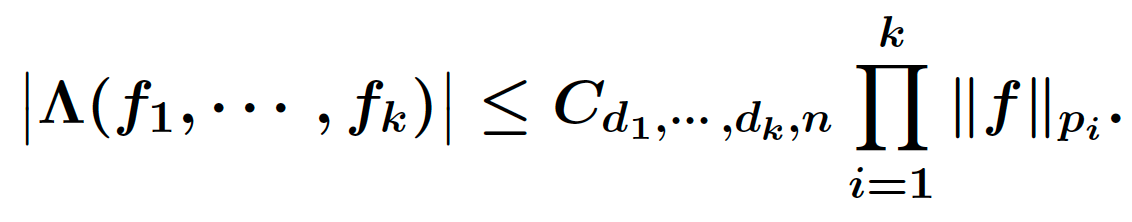 Actually, we completely answer the question raised by Grafakos. For some cases, we will prove that the constant number $C_{d_1,\cdots,d_k,n}$ is just the sharp bound of the following generalized Hardy-Littlewood -Sobolev inequality: