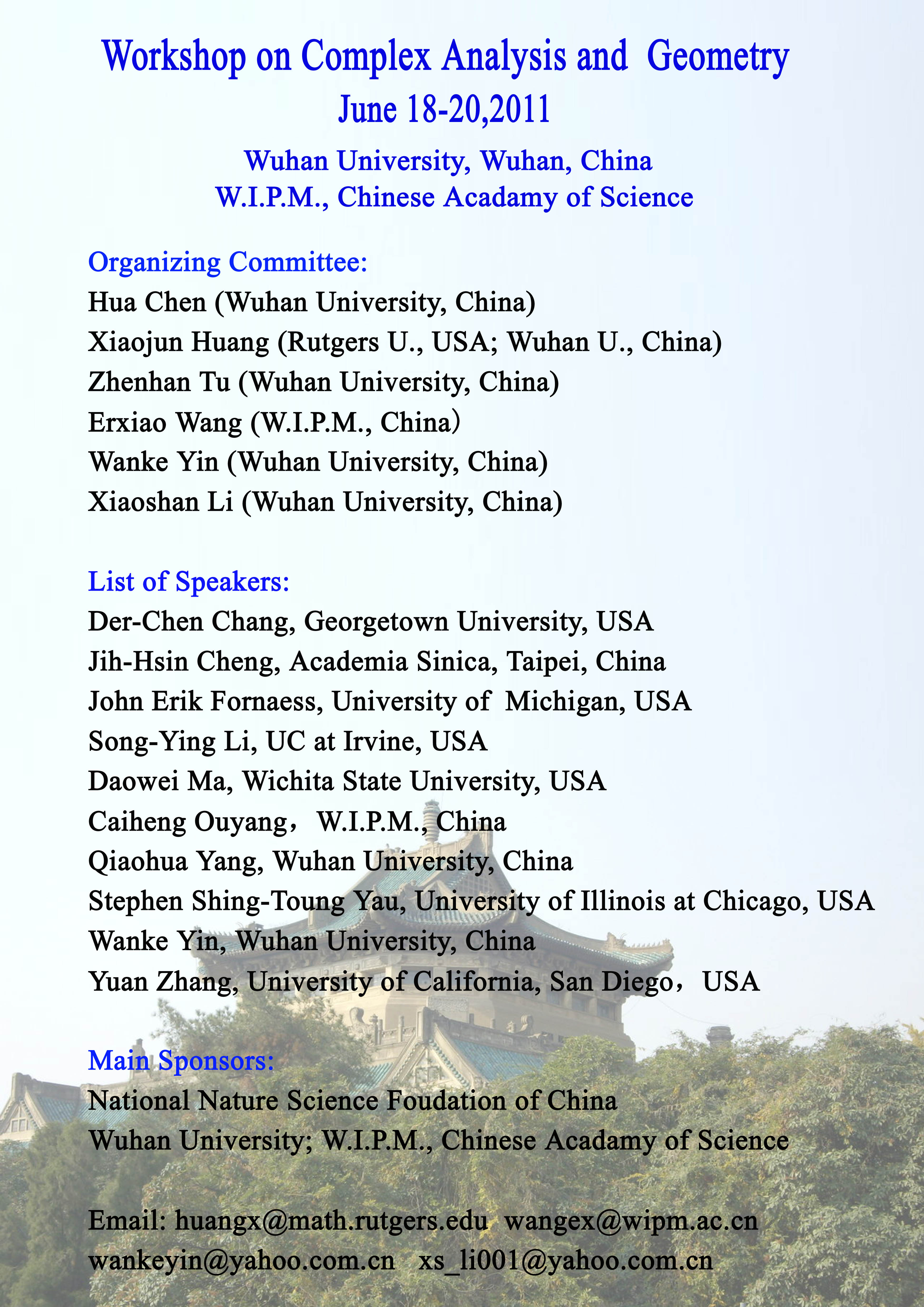 Workshop on Complex Analysis and Geometry