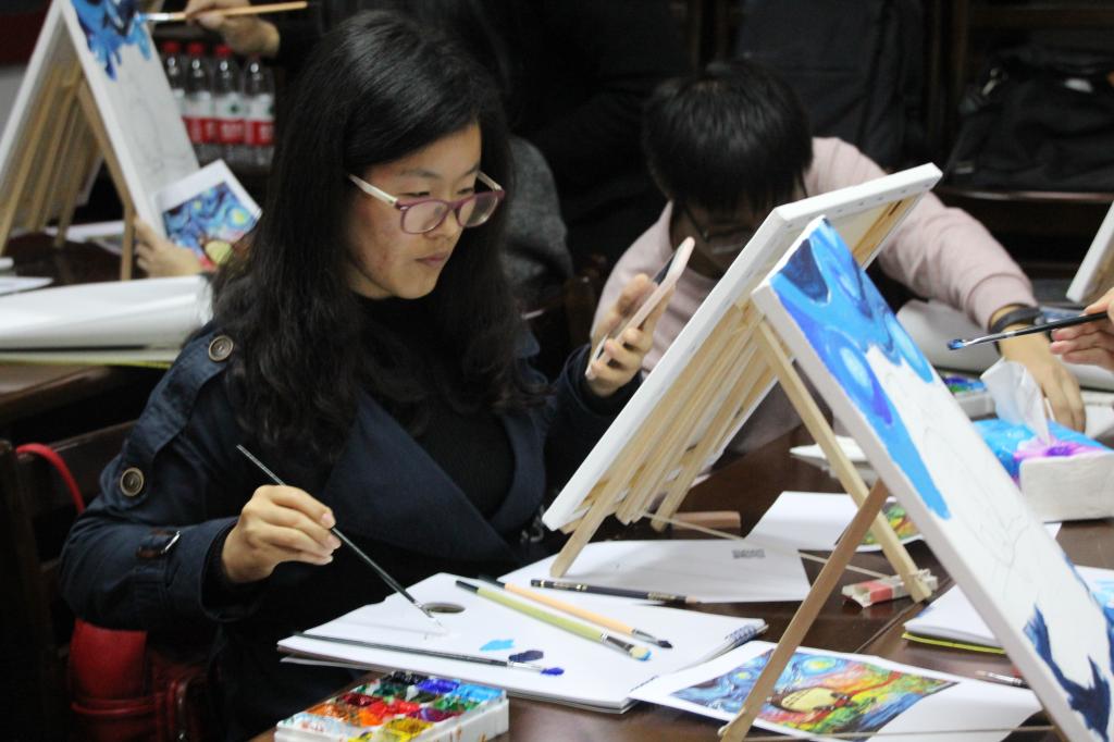 来自经济与管理学院2017级博士生王同学说:“刚开始画的时候这里画一点那里画一点,整体把握得也不是特别好,后来慢慢地熟悉了,调色也调得越来越好了,以前没有画过这种画,完全是一次全新的体验。