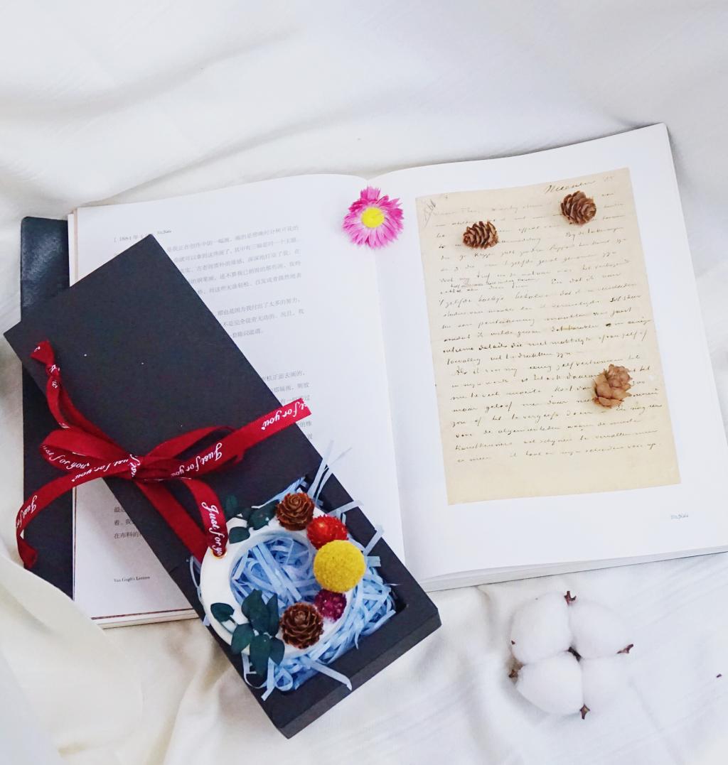 来自法学院的赵同学将自己的蜡片命名为《胖虎的梦》,她的创作灵感是以为憨厚稳重的朋友,因此她的蜡片上没有浓烈的红色花朵,而用坚韧的松柏叶和圆润可爱的松果来展现这位朋友的特色�