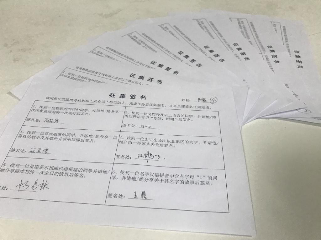 为了让同学们在制作之前能够相互熟悉起来,方老师首先带领大家进行了破冰游戏——“征集签名”。最难忘的旅行、掌握四种语言的大神、喜爱唱歌的人、水瓶座是风相还是水相星座,千奇百怪的问题和关键词让大家在开怀大笑的同时,渐渐熟悉了身边原本陌生的同学�