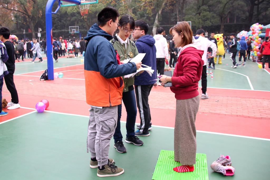 与城市设计学院和新闻与传播学院共同设计的游戏为指压板24点。说到指压板,你的第一反应是不是那如电流一般瞬间窜过全身的疼痛与舒爽?还是难以抑制的鬼哭狼嚎?而提到24点你的印象又是什么?是冥思苦想,与四个小小的数字百般争斗?还是看着时间一分一秒的过去自己却一筹莫展的苦恼?作为一个靠脑力吃饭的学院,数院把脑力的元素与体育结合,让同学们在锻炼身体的同时也感受到算到“头秃”的乐趣,令人印象深刻。