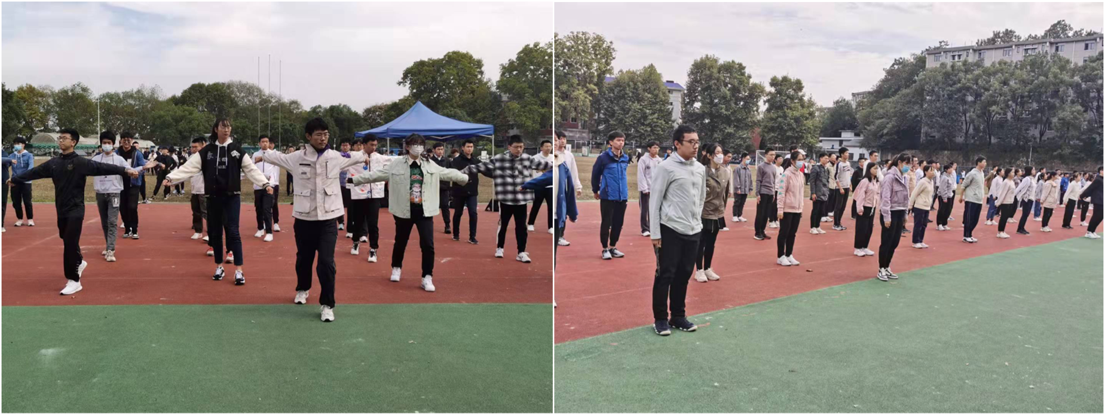 接下来,2021级学生以昂扬的姿态进场。赛前各班同学在文体委员的带领下积极练习,认真备赛。今日,金色的阳光微微洒在他们脸上,彰显出青春的朝气;刺骨的寒风从八面袭来,却夺不走他们的意气。虽然这是他们第一次参赛,但经过一个多月磨合的他们相互之间十分默契,动作整齐划一,姿态舒展大方,展现出的青春风采并不亚于高年级的学长学姐,相信通过今年的经验积累,他们能在明年取得更好的成绩!