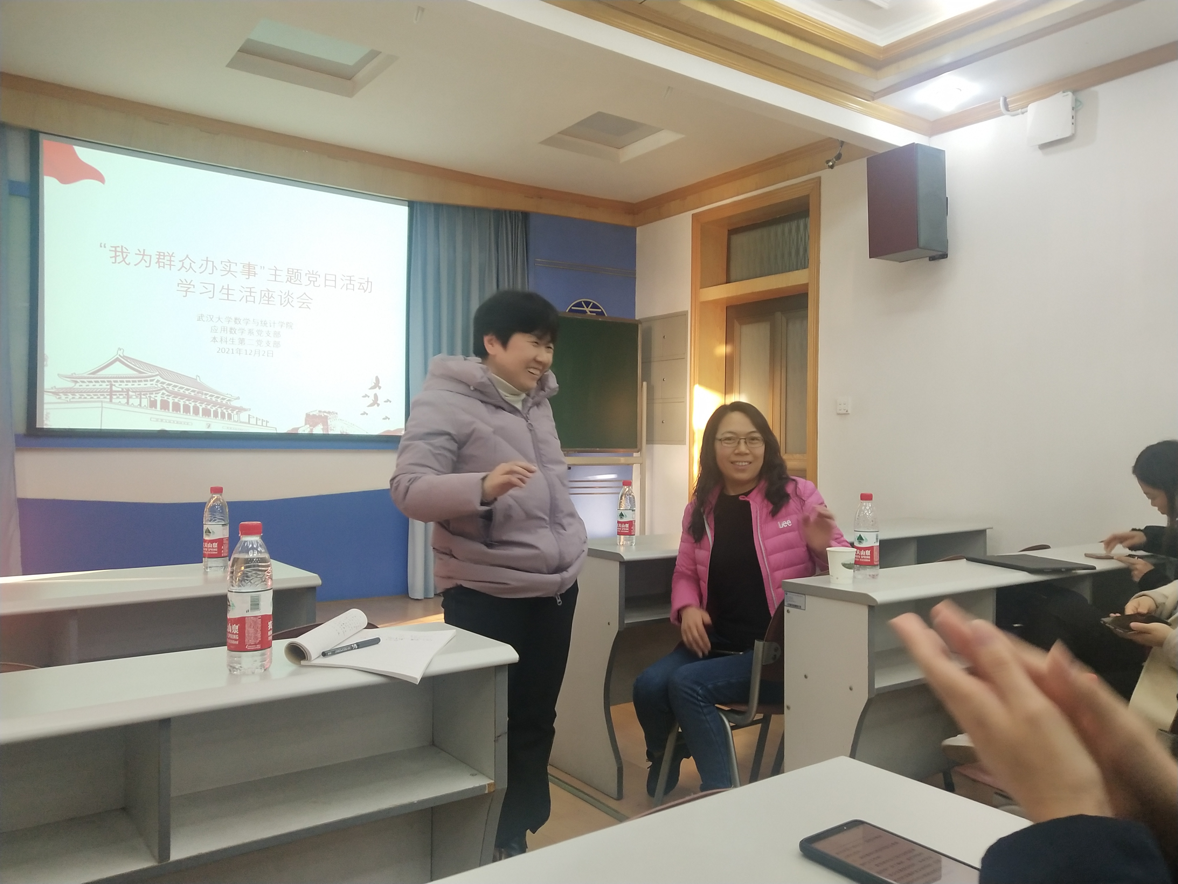 为了充分发挥基层党组织战斗堡垒作用和党员先锋模范作用,进一步深化党史学习教育“我为群众办实事”实践活动,12月2日,我院应用数学系党支部与本科生第二党支部共同开展“我为群众办实事——学生学习生活座谈会”主题党日活动。应用数学系王丽娟、羿旭明、胡元明、胡捷、吴晓群和雷玲等六位教师党员出席活动,参加活动的还有本科生第二党支部党员及其他各年级本科生。座谈会由本科生第二党支部书记王健主持。