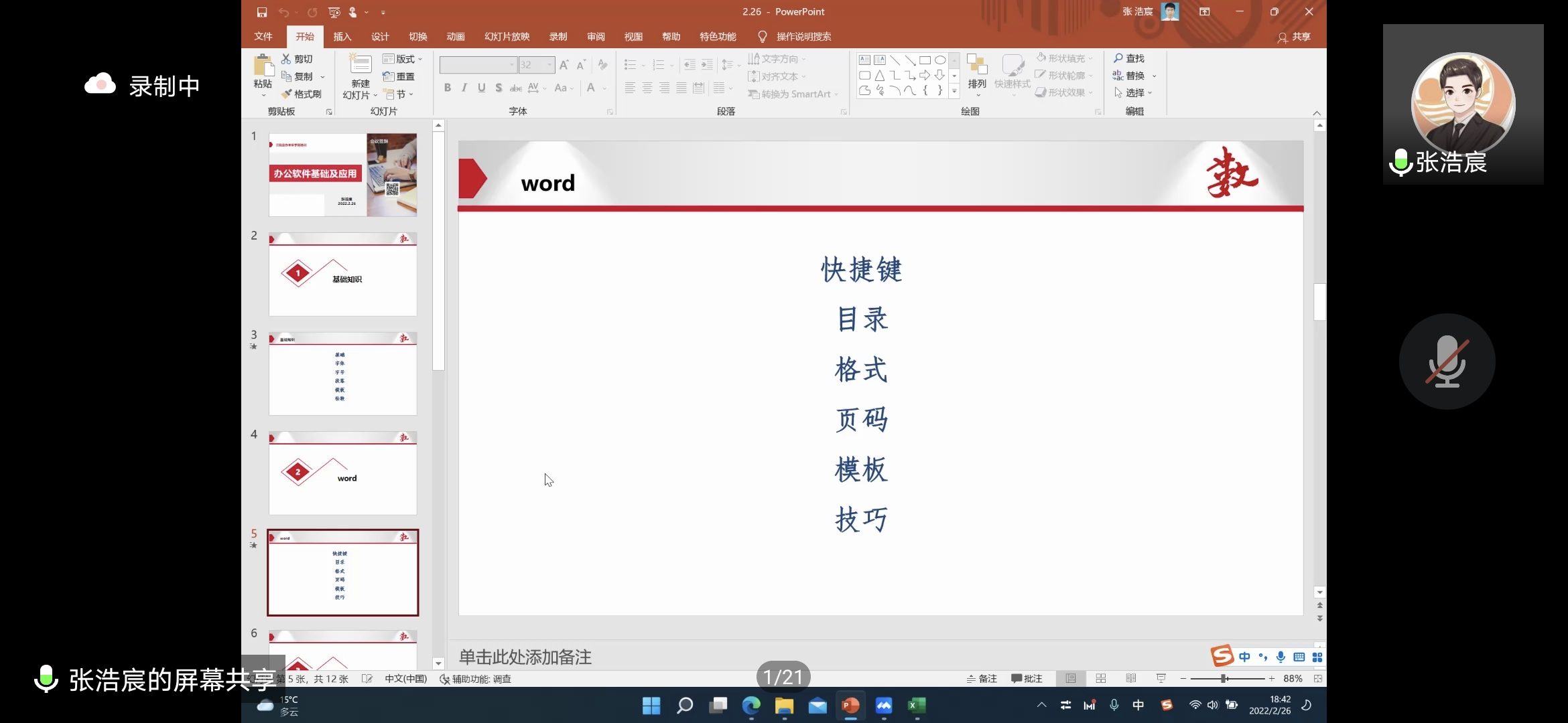 雨送冬音,繁春已至,值此时节,第十三期“未来学院”文数信分校于2月26日线上进行开学第一次授课,全体“未来学院”文数信分校学员参与学习。本次展示课以“办公软件基础及应用”为主题,由数学与统计学院的张浩宸同学讲解,帮助学员掌握办公软件应用技巧,提高工作效率,加强办公素养。