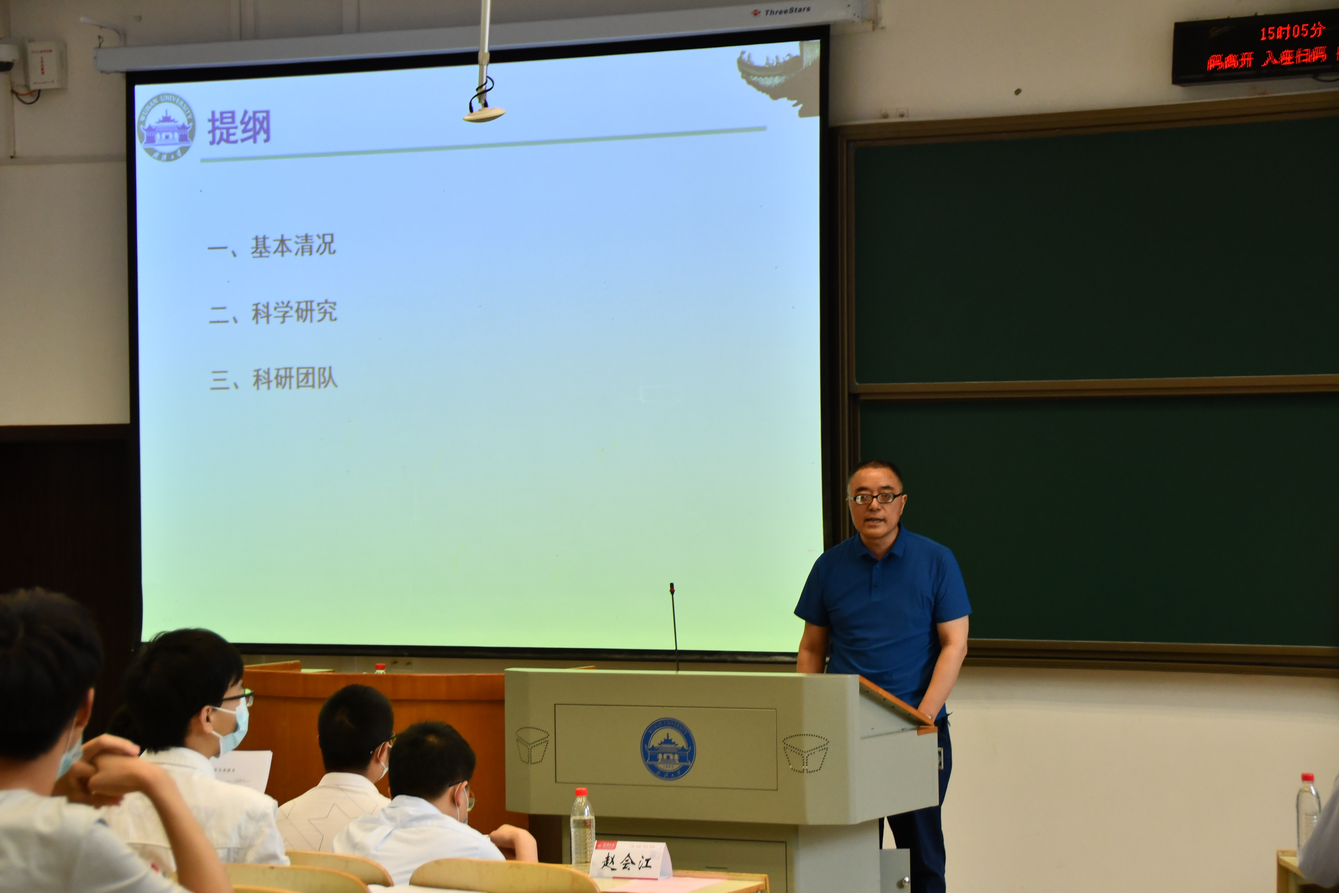 会议伊始,赵会江向同学们介绍了学院学科专业分布、学科平台和学科实力,还对对学院非线性分析、多复分析与复几何等科研团队进行了介绍,让同学们对学院的科研团队有清晰的认识。