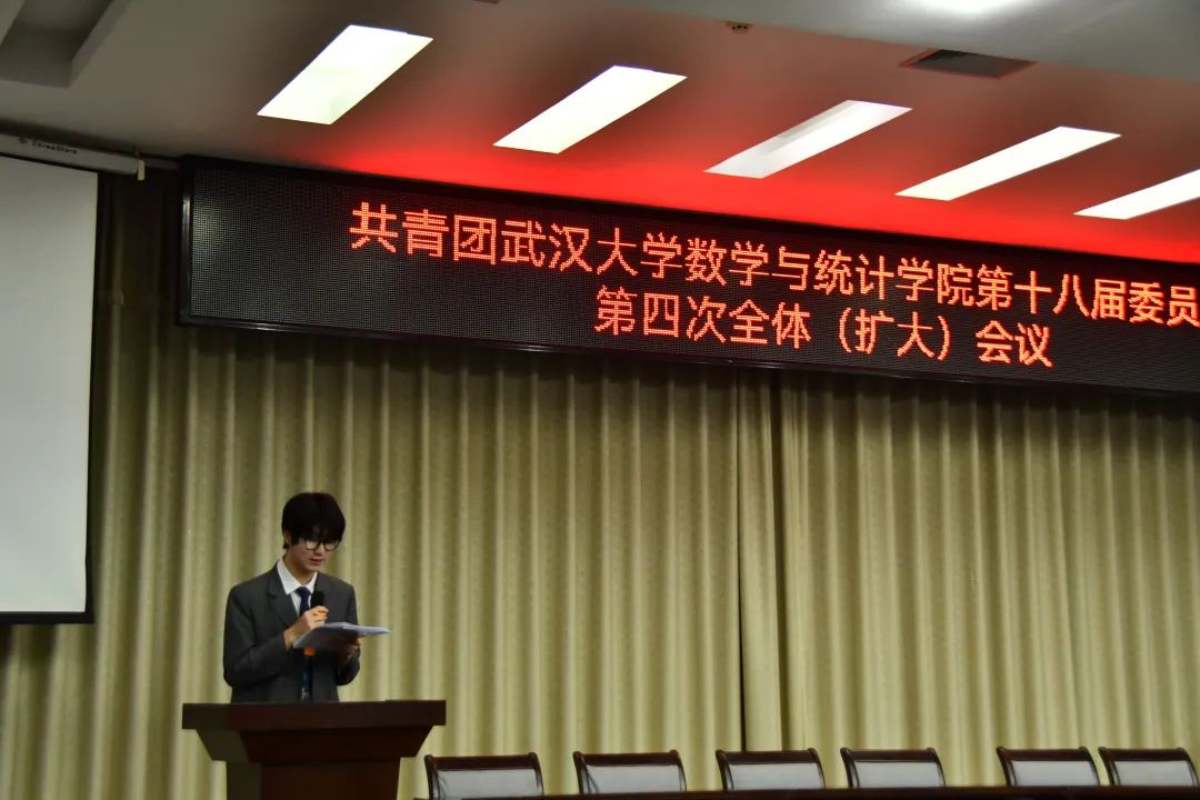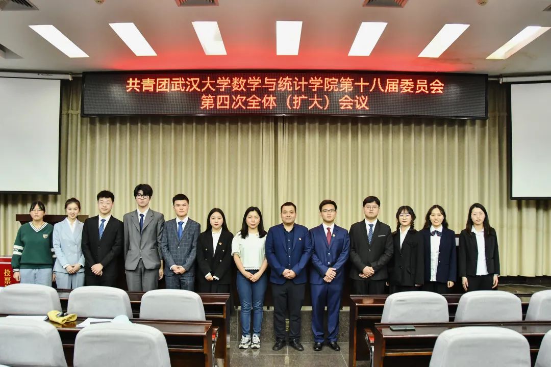 2022年5月19日,共青团武汉大学数学与统计学院第十八届委员会第四次全体(扩大)会议于学院数学会堂正式召开。与会人员有,学院团委书记刘宇晖、院第十八届团委委员以及各团支部书记。本次会议由院十八届第二任期学生团委副书记刘傲然主持。