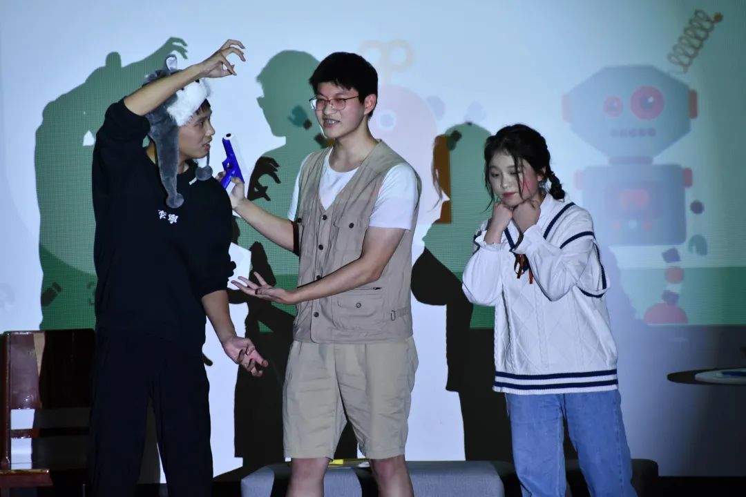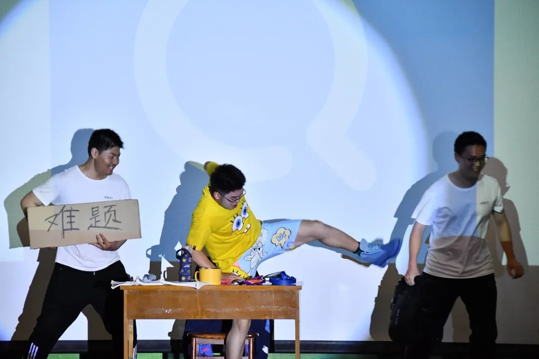 强基班的话剧《时间都去哪了》展现的是,在被娱乐与物质享受充斥的当代生活里,一名普通大学生的日常细致地展现在观众的眼前。来自各方面的诱惑化为实体在主角身边兜兜转转,而主角看着堆积未完的作业、感受着永不停歇的时光,不禁发出疑问:时间都去哪了?