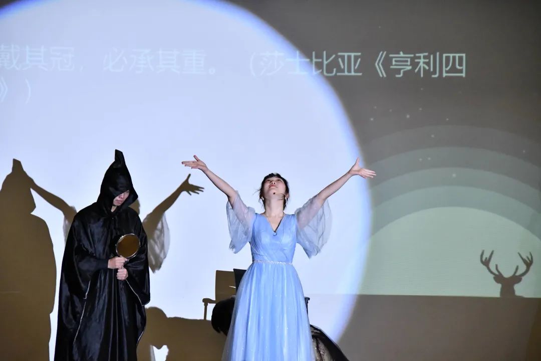 四班的话剧《黑雪公主》讲述的是,当白雪公主黑化为黑雪公主,当哈利波特遇见黑雪公主,在这样一个剑与魔法的世界,摩擦出了生动有趣的火花。话剧中引用了各式话剧的名言,穿插着独属于数院的特色,让学生们忍俊不禁。