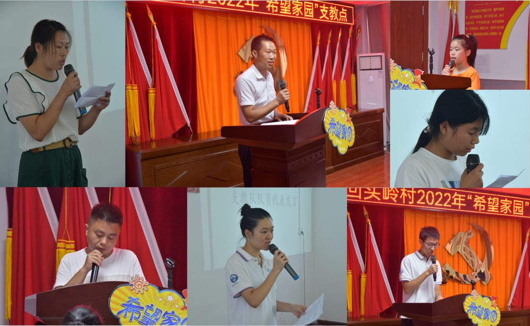 团委书记刘宇晖、白霓镇副镇长程桔、回头岭村党支部书记曾崇武、石山村党支部书记熊辉出席本次结业仪式。志愿者代表、家长代表、学生代表先后发言,谭其军书记总结本次“希望家园”活动。