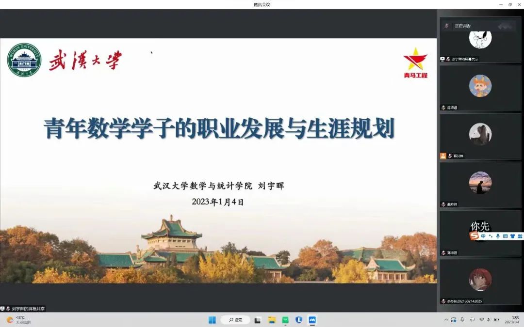 举行“青年马克思主义者培养工程”培训班(以下简称“青马班”)第四次课程暨团校第二十九期培训班课程在线上开展。院团委书记刘宇晖做主题为“青年数学学子的职业发展和生涯规划”的课程讲座。院“青马班”首期学员、团校第二十九期学员共140余人参加。