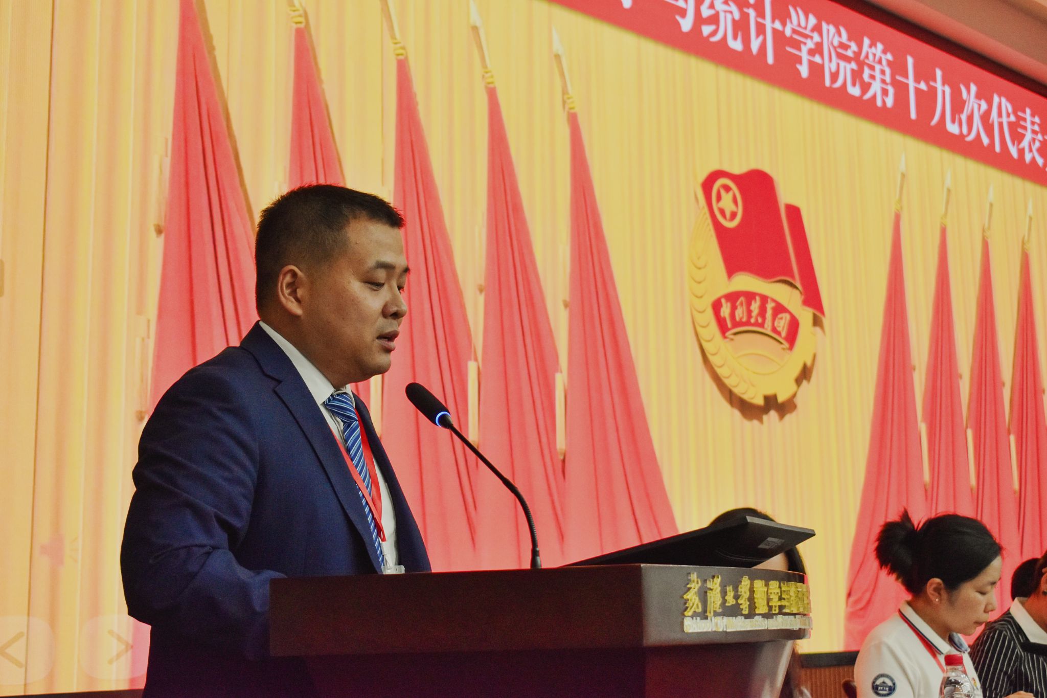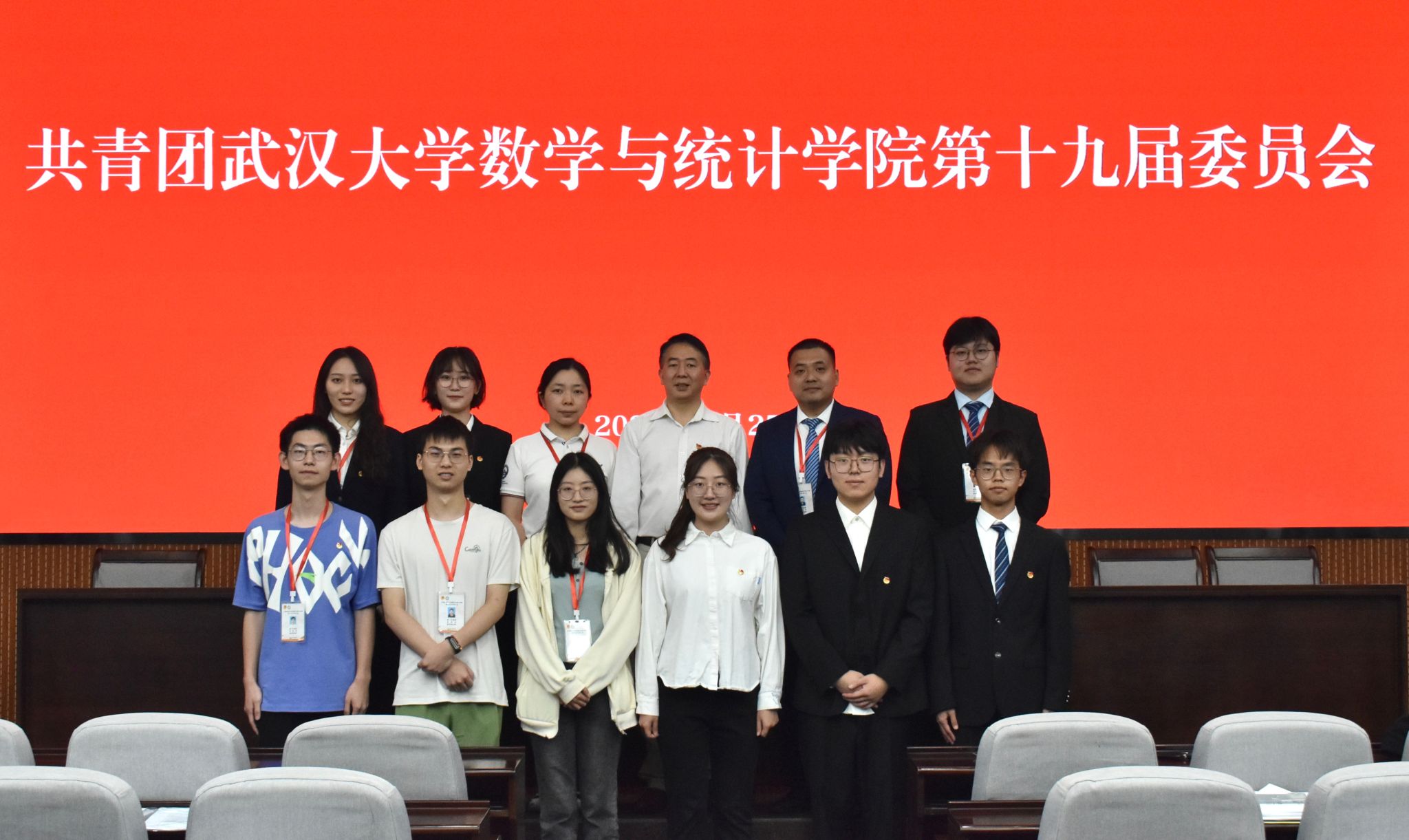 5月25日下午,共青团武汉大学数学与统计学院第十九次代表大会于数学会堂召开。武汉大学团委组织办公室主任陈亚新、数学与统计学院党委副书记汪思明、学生工作办公室主任胡法拉、团委书记刘宇晖出席会议。来自学院本科生、研究生各团支部的团员代表参加会议,曾在学院共青团工作过的部分专兼职团干部应邀列席会议。院学生工作办公室副主任、团委副书记宋智祺主持开幕式暨第一次全体大会。