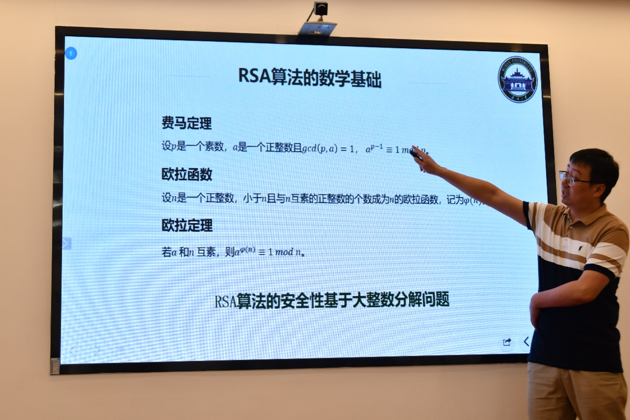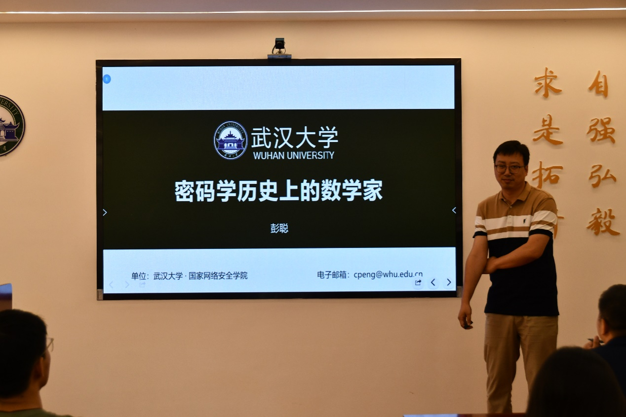 国家网络安全学院副研究员、硕士生导师彭聪应邀为同学们讲述《密码学历史上的数学家》。院团委书记刘宇晖主持讲座。