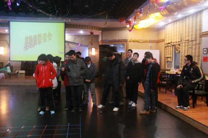 二位老师别出心裁,循序善诱,设计了考察责任心和团队精神的扫雷游戏,所谓寓深意于嬉戏,快意中有所得,这已是相当令人陶醉的了。到现场的70余名学生被随机分为两组进行比赛,先是探雷,之后团体成员都要从这条既探出的“既定路线”走过,若有一位成员稍一失足踩线或不记路线,所有成员均要重新开始。咋听如此游戏,对象是数学基地班学生,颇有轻视我等大学青年之意,诸位均有“反掌之易”的感觉。