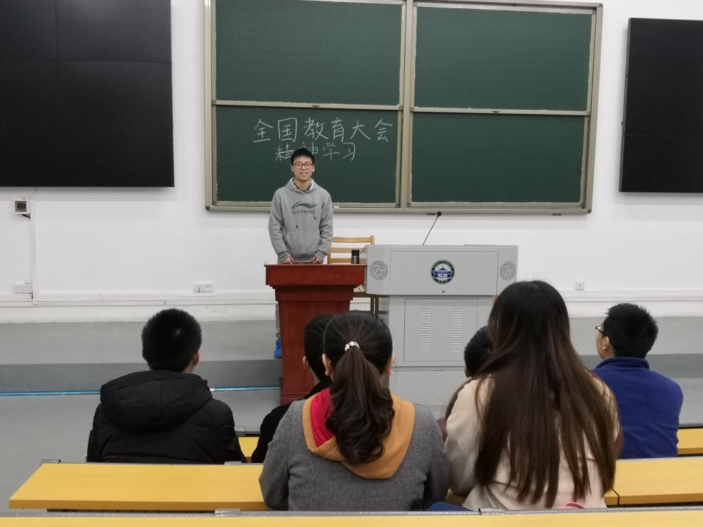 首先是由支部书记朱凤梧同志带领各位党员学习和贯彻习近平总书记关于这次全国教育大会精神演讲的内容。教育是国之大计,党之大计,习近平总书记在教育大会中指出现在教育的首要问题是培养什么样的人,这决定了教育工作的根本任务和教育现代化的首要目标是培养社会主义建设者和接班人,加强党对教育工作的全面领导,是办好教育的根本保证。办好教育事业,家庭、学校、政府、社会都有责任。教育大会中还强调了增强“四个意识”、坚定“四个自信”的重要性,阐述了九个坚持,明确了一个根本任务,对加快推进教育现代化、建设教育强国、办好人民满意的教育做出全方位部署。活动中各位党员都认真学习和领会了习近平总书记的重要讲话精神。