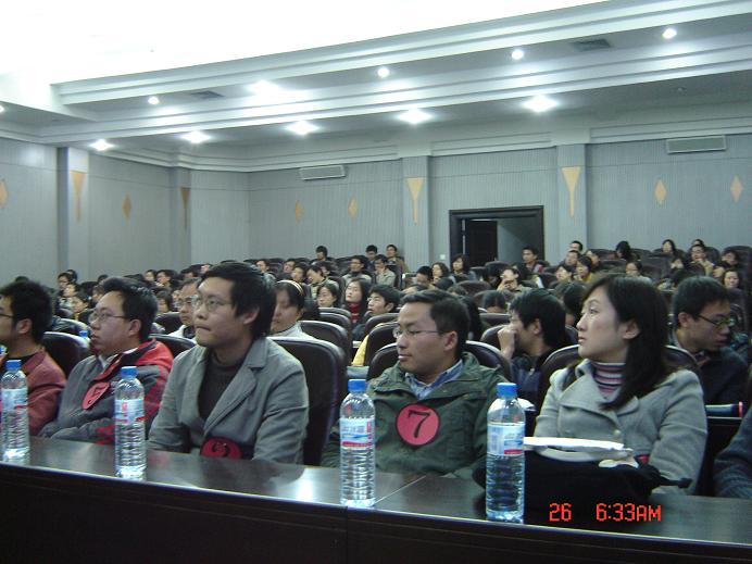 的刘伟、朱艳庆、贺福利,物理科学与技术学院的张剑,化学与分子科学学院的付洋,生命科学学院的孙东昌七位归国博士生嘉宾一一上台就座。他们以风趣的语言和丰富的图片向与会的研究生全面介绍了他们在国外的学习、工作、生活情况和留学国家的风土人情,并结合自己的切身体会向大家提出了具体而实际的建议。台下的研究生也不断提出问题,现场气氛非常活跃,活动一直持续了将近四个小时。