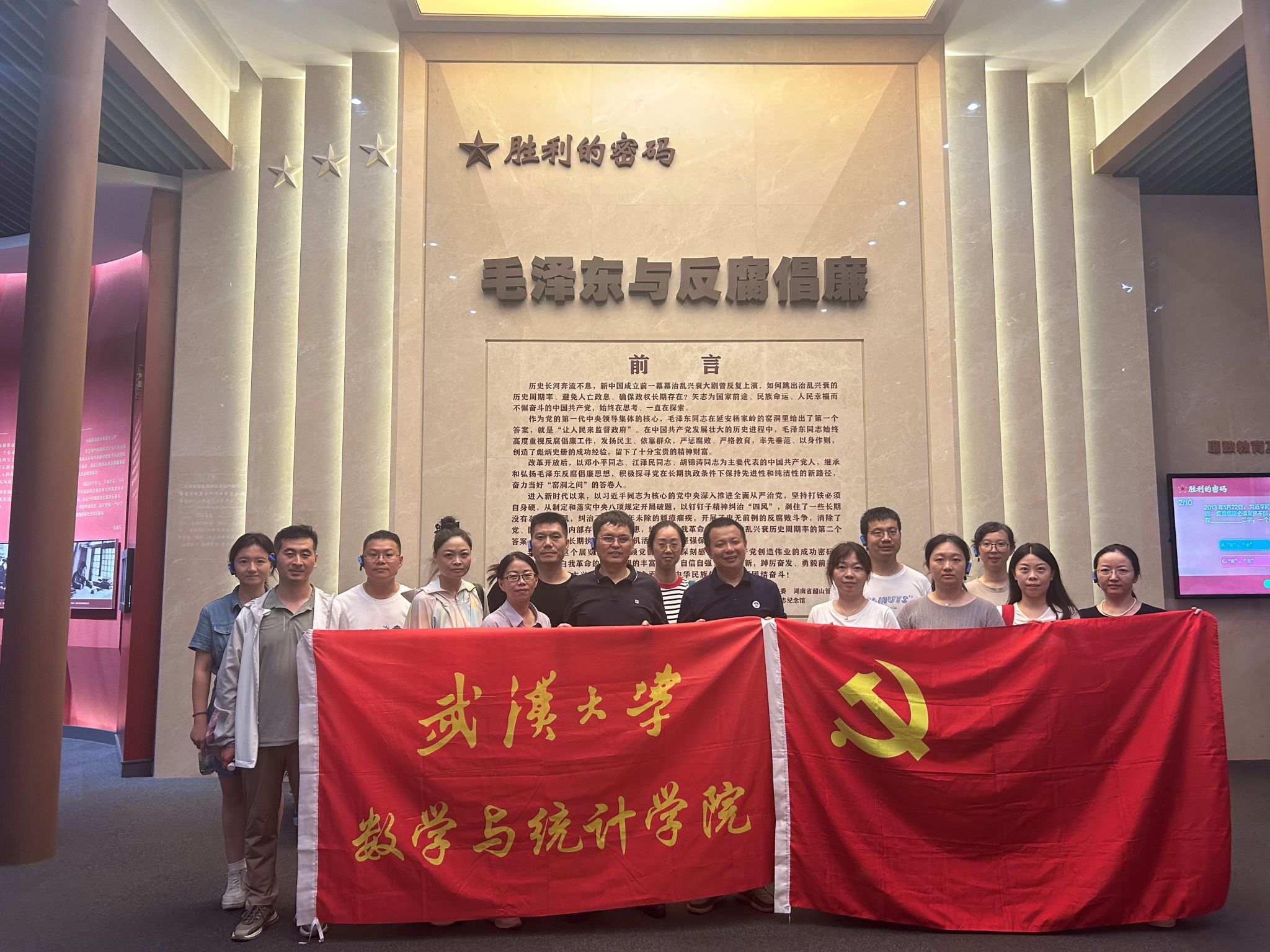 为深入推进党纪学习教育走深走实,中心组成员在“毛泽东与反腐倡廉”专题展厅中开展了党风廉政教育,感悟一代伟人的心路历程,学习毛泽东同志为核心的第一代中央领导集体发扬民主、依靠群众,严惩腐败、严格教育,率先垂范、以身作则,创造彪炳史册的成功经验,进一步引导教工党员强化纪律意识、加强自我约束、提高免疫能力,增强政治定力、纪律定力、道德定力、抵腐定力,始终做到忠诚干净担当,在加快中国特色世界一流大学建设的新征程上勇担使命、开拓新局,答好“推进中国式现代化,武大何为”的时代命题。