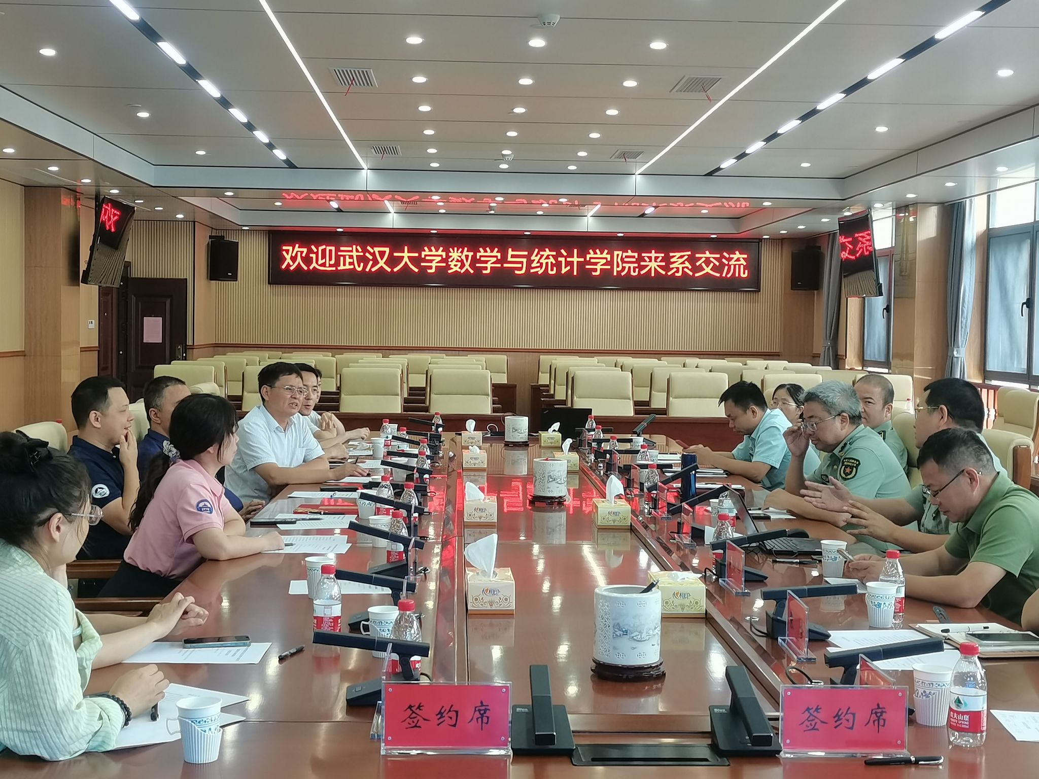 7月11日下午,院党委理论学习中心组(扩大)赴国防科技大学开展交流学习,我院党委与国防科技大学理学院数学系党委签订党建联合育人基地共建协议,双方将在人才培养、学科建设、科学研究、队伍建设等方面加强交流合作,通过资源共建、优势共享、协同共进,推动党建工作创新发展,促进双方单位各方面建设开新局、上台阶、见实效。