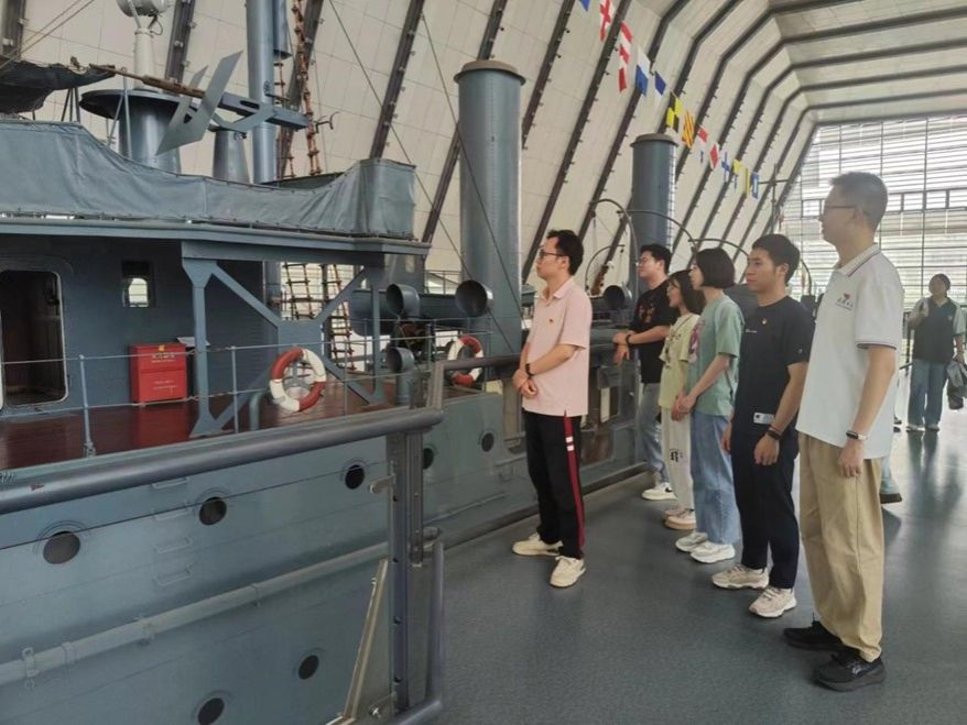 在中山舰博物馆,大家先后参观了“中山舰舰体陈列”“一代名舰——中山舰史迹陈列”和“中山舰出水文物精品展”。保留了部分弹孔的中山舰舰体、珍贵的出水实物,为我们提供了宝贵的历史见证,激荡起振奋人心的精神力量。