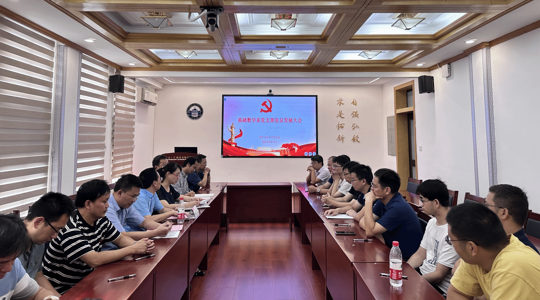 基础数学系党支部召开党员发展大会,讨论接收该系王六权教授为中共预备党员。校党委组织部副部长王三礼,院党委书记左军,院党委委员、副院长王茂发教授出席会议,院党委委员、基础数学系主任、党支部书记刘晓春教授主持会议。
