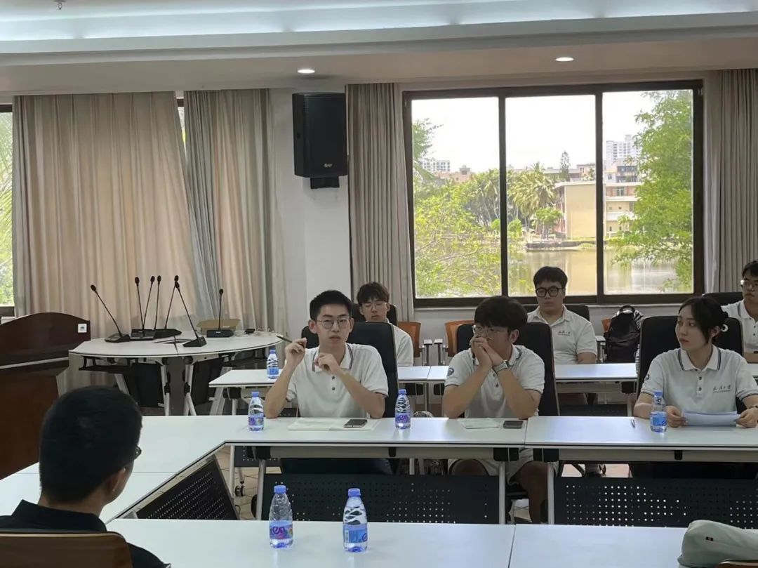 2022-2023学年在文体、科创、取得突破的同时,着力推动“学习邦”活动常态化运行,开设首期青马班,增强政治引领。王浩华则从“以竞赛促科研”模式、设立导师制、组织答疑辅导活动三个方面介绍海南大学理学院数学系团学工作的亮点。之后,实践队队员贾苏琪、吴斯杰与海南大学研究生就领域前沿研究方向和学院科研培养工作展开交流。实践队伍更进一步了解了海南大学理学院的人才培养模式,并与数学系学生们相互借鉴学生工作经验。双方表示,要加强交流合作,汲取互相的优点和经验,合力建设优良的人才培养模式和学生工作质量,更好地服务于学院发展建设需求。